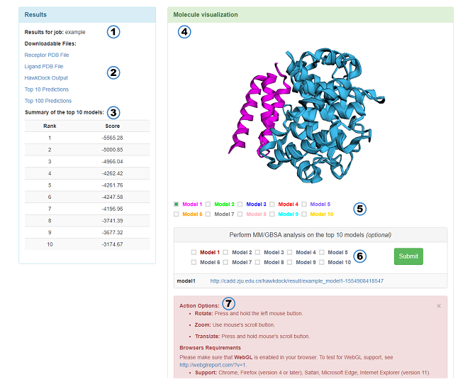 MM/GBSA: You can submit some models to calculate MM/GBSA. Red indicates that the model has been submitted. The URLs of results are shown below.